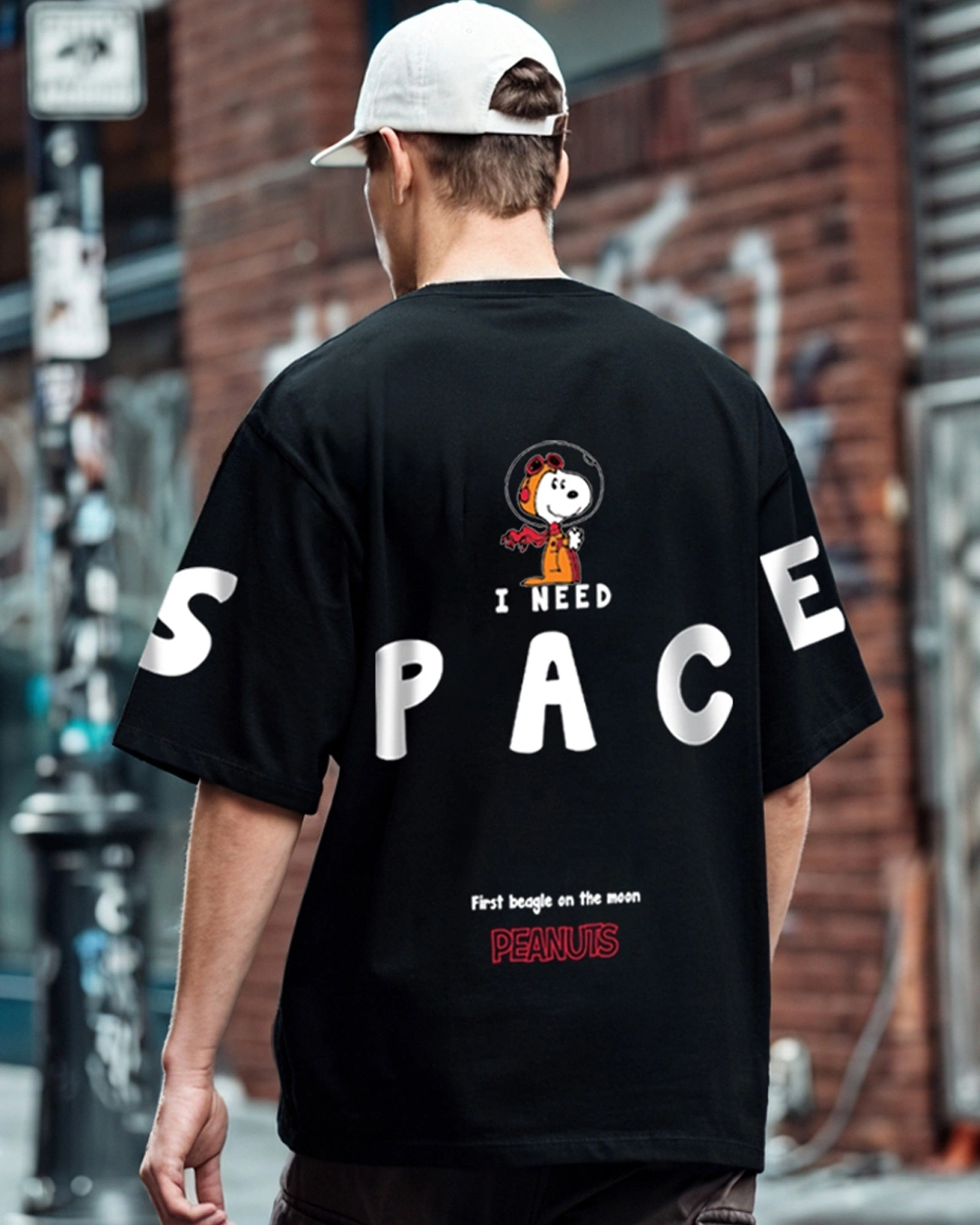 Black Need Space Snoopy Graphic Printed Oversized T-Shirt. Designed for those who appreciate fun fashion with personality, this tee celebrates the iconic Snoopy with a modern twist. The minimalist yet expressive design captures the mood of wanting space — literally and emotionally — making it relatable, stylish, and perfect for everyday wear.