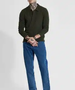 The rich dark green color exudes a sense of luxury and versatility, making it a timeless choice for men who appreciate classic yet contemporary fashion. The traditional polo collar with a two-button placket adds a refined touch, while the ribbed cuffs ensure a comfortable and snug fit. The high-quality stitching enhances durability, ensuring long-lasting wear without compromising on style.