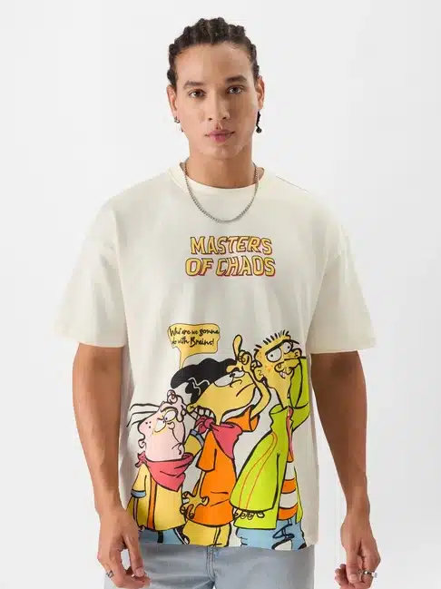 So, whether you’re exploring the city streets or chilling with friends, make a bold statement with the Eddy Chaotic Bros Off White Loose Fit Oversized Crew T-Shirt—an essential piece for those who dare to defy convention and embrace their unique sense of style.