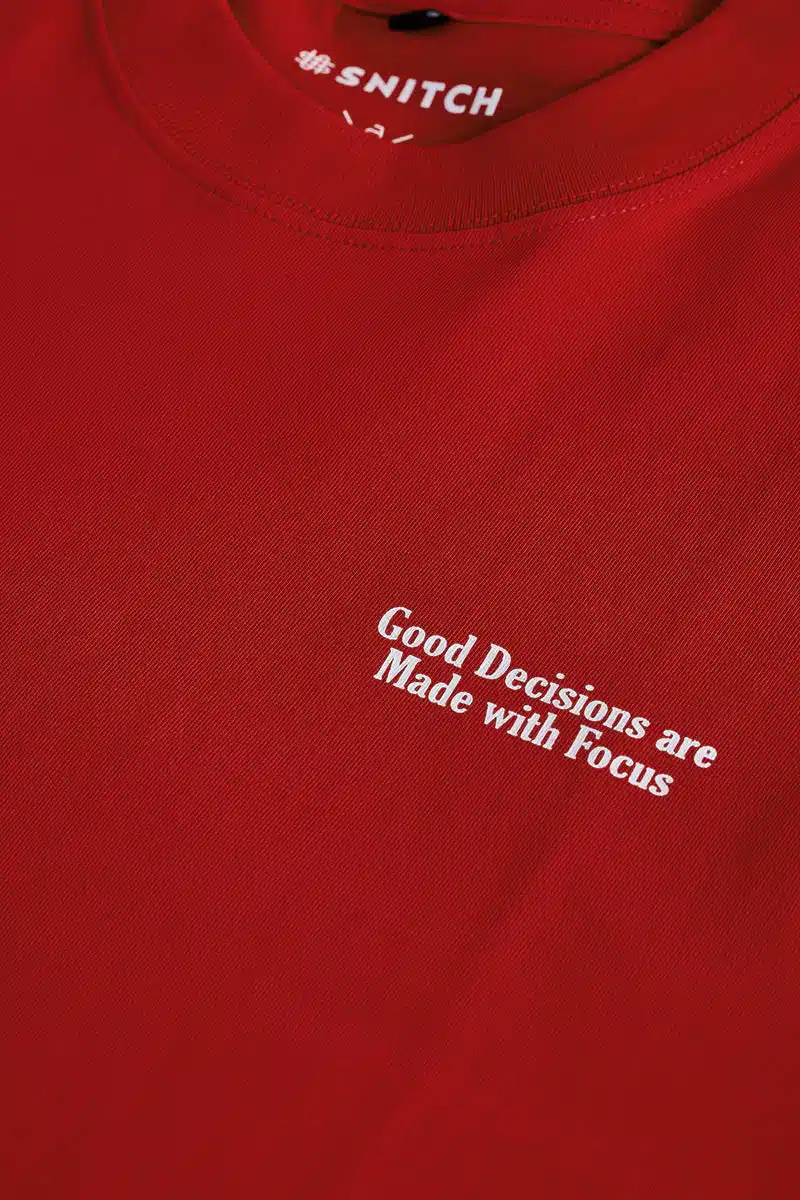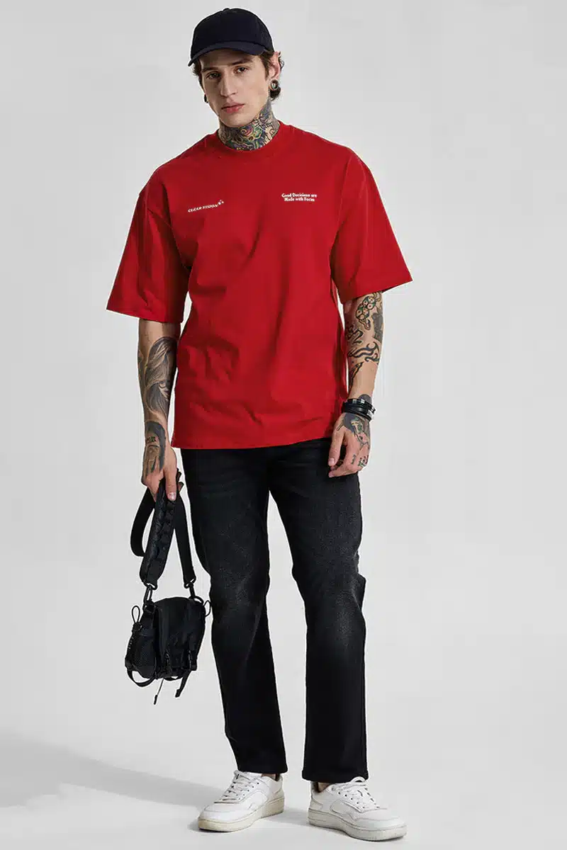 Upgrade your wardrobe with the Good Decisions Red Oversized Fit T-Shirt—a comfortable, stylish, and empowering piece that blends modern streetwear vibes with an effortlessly cool attitude. Perfect for those who embrace bold fashion and confident self-expression, this t-shirt is a must-have staple for making a strong yet effortless statement.