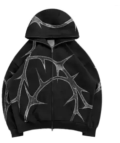 Crafted from high-quality materials, our hoodies ensure a snug fit while providing the versatility needed for various occasions. The thorn rhinestone embellishments add a bold and distinctive element, creating a unique aesthetic that sets you apart in any crowd.