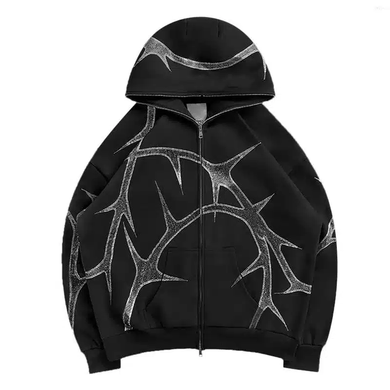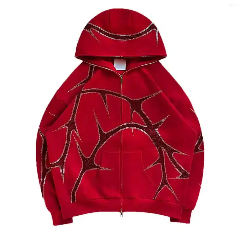 Men’s Zipper Hoodies, meticulously designed to merge comfort with captivating style. Featuring exquisite thorn rhinestone detailing, these hoodies redefine streetwear by adding a touch of edgy sophistication.