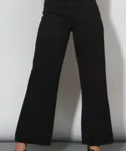 Crafted from premium-quality denim, the jet black wash adds a sleek, chic edge, making these jeans perfect for a variety of occasions. The deep black hue offers versatility, easily pairing with anything from bright colors to more muted tones. The jeans’ wide-leg cut allows them to flow beautifully from the hips down, creating an elegant and elongating effect that suits any body shape. Whether you’re looking for a pair of jeans to wear to the office, a night out, or just a stylish weekend look, these jeans have got you covered.