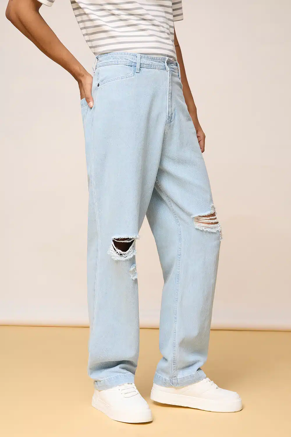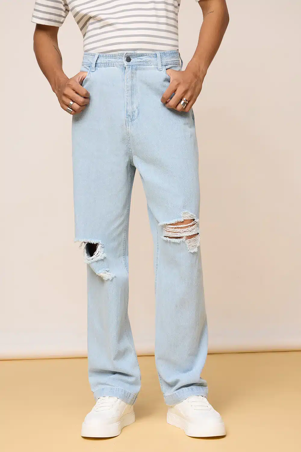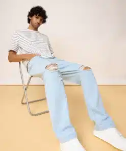 Light Blue Distressed Knee Straight Jeans for Men, a modern essential that effortlessly combines relaxed vibes with a bold, street-inspired edge. Featuring a classic straight leg silhouette, these jeans are designed to provide all-day comfort while maintaining a crisp and contemporary look. The light blue wash lends a fresh, summery feel, making them an ideal pick for both daytime outings and casual evening plans.