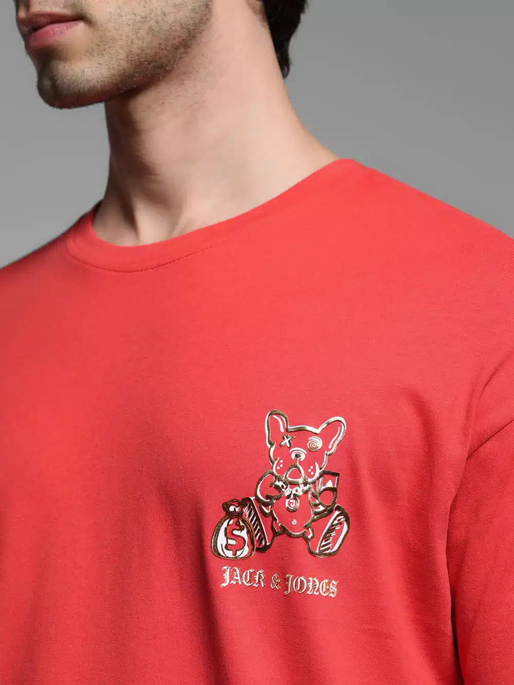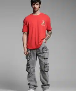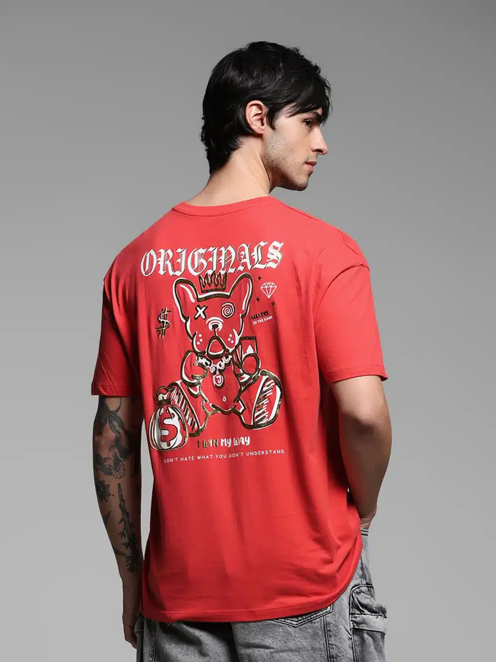 Pair the Red Graphic Oversized T-Shirt with ripped jeans, cargo pants, or even joggers to complete the relaxed yet edgy outfit. Add sneakers, a cap, or a crossbody bag to elevate the look. For men who want to keep it casual without losing their edge, this T-shirt is a go-to essential for statement-making style.
