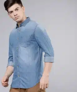 This denim shirt is easy to maintain and retains its shape and color even after multiple washes. The sturdy fabric resists wear and tear, ensuring long-lasting use. Whether you’re looking for an everyday casual staple or a stylish layering piece, the Men’s Slim Fit Blue Faded Denim Shirt is the perfect addition to your wardrobe, offering a timeless and effortlessly cool vibe.