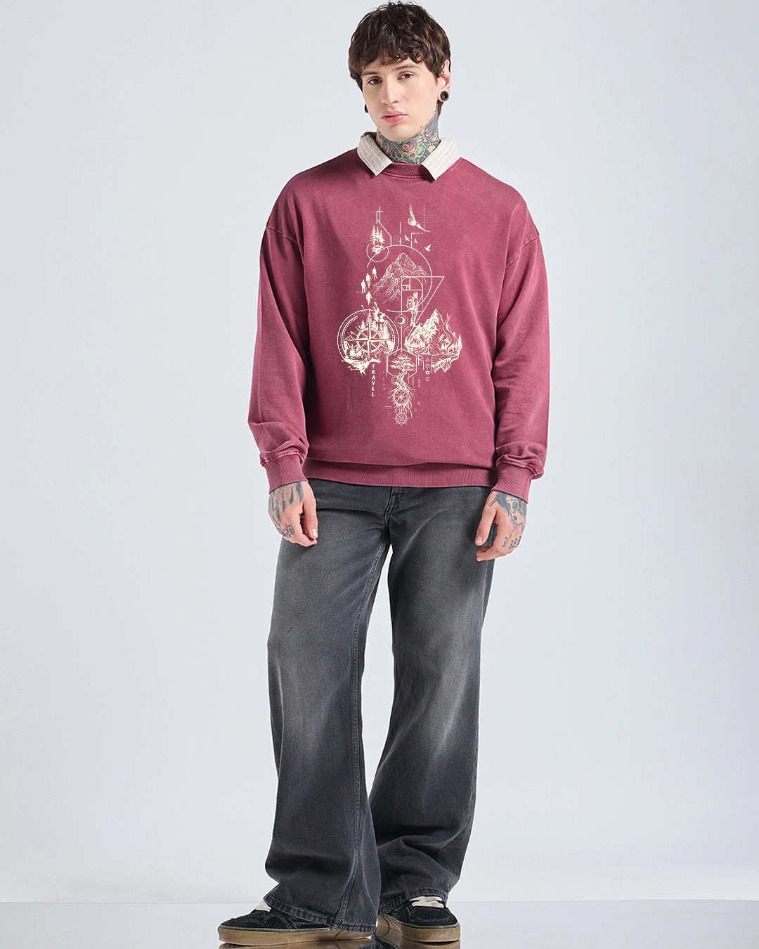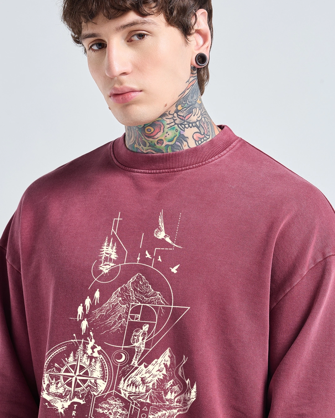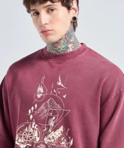Wearing this piece is more than just putting on a sweatshirt; it’s stepping into something that feels meaningful, adventurous, and effortlessly stylish. It invites you to express your individuality while enjoying the kind of comfort that makes every moment feel easier. The blend of Tibetan red, acid wash texture, travel-inspired artwork, and oversized shaping results in a garment that feels rich in mood and modern in design. Over time, it becomes a favorite piece you reach for not only for warmth or convenience, but because it carries an aesthetic and emotional appeal that truly resonates with your sense of style and your love for unique, character-filled fashion.