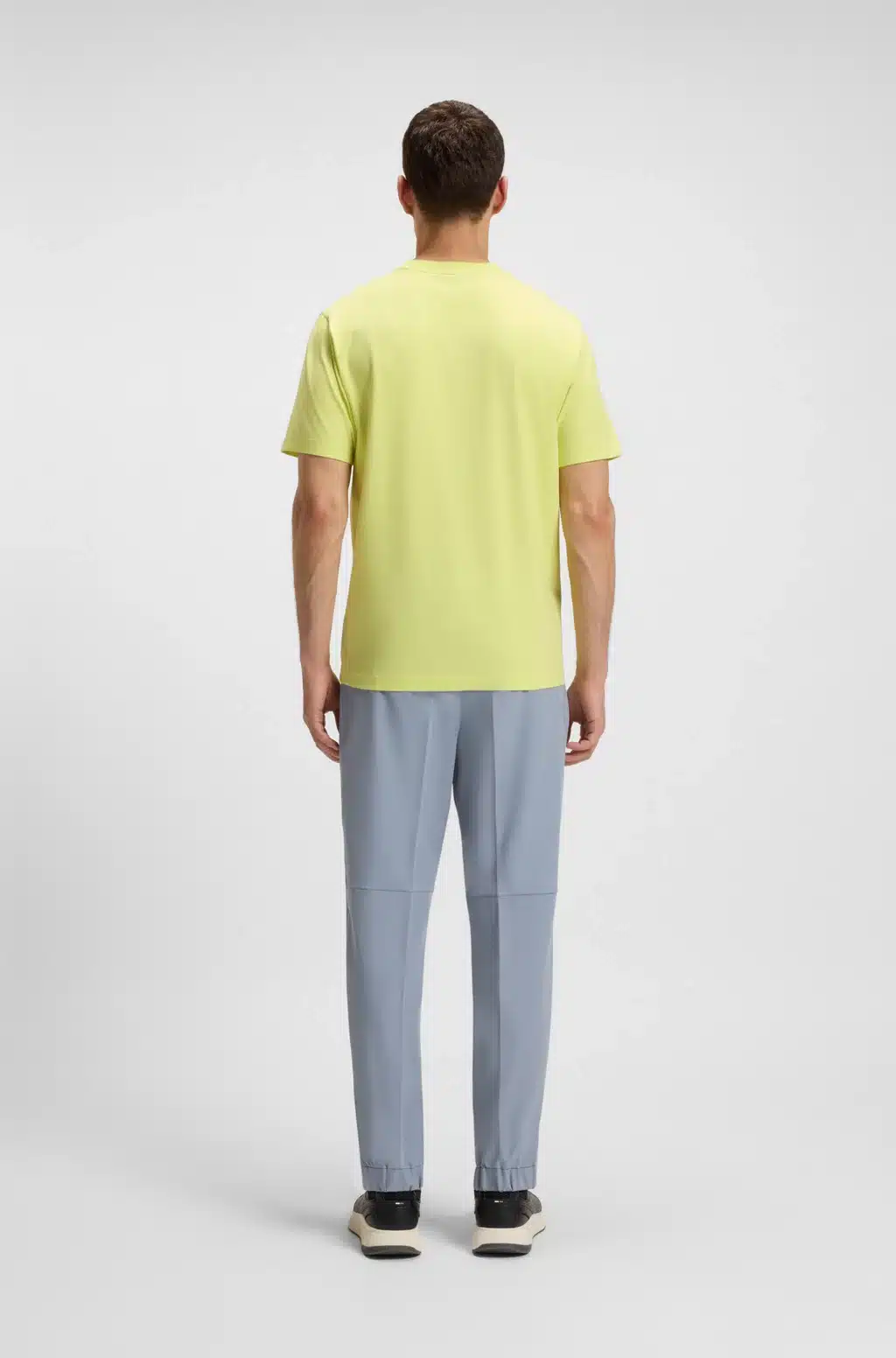 Crafted from high-quality stretch cotton, it offers the perfect combination of softness, breathability, and a touch of flexibility for all-day ease. The material adapts to your movement while retaining its shape, giving you a tailored feel with a relaxed fit. Smooth to the touch and lightweight on the skin, this tee works well in both warm and layered settings.