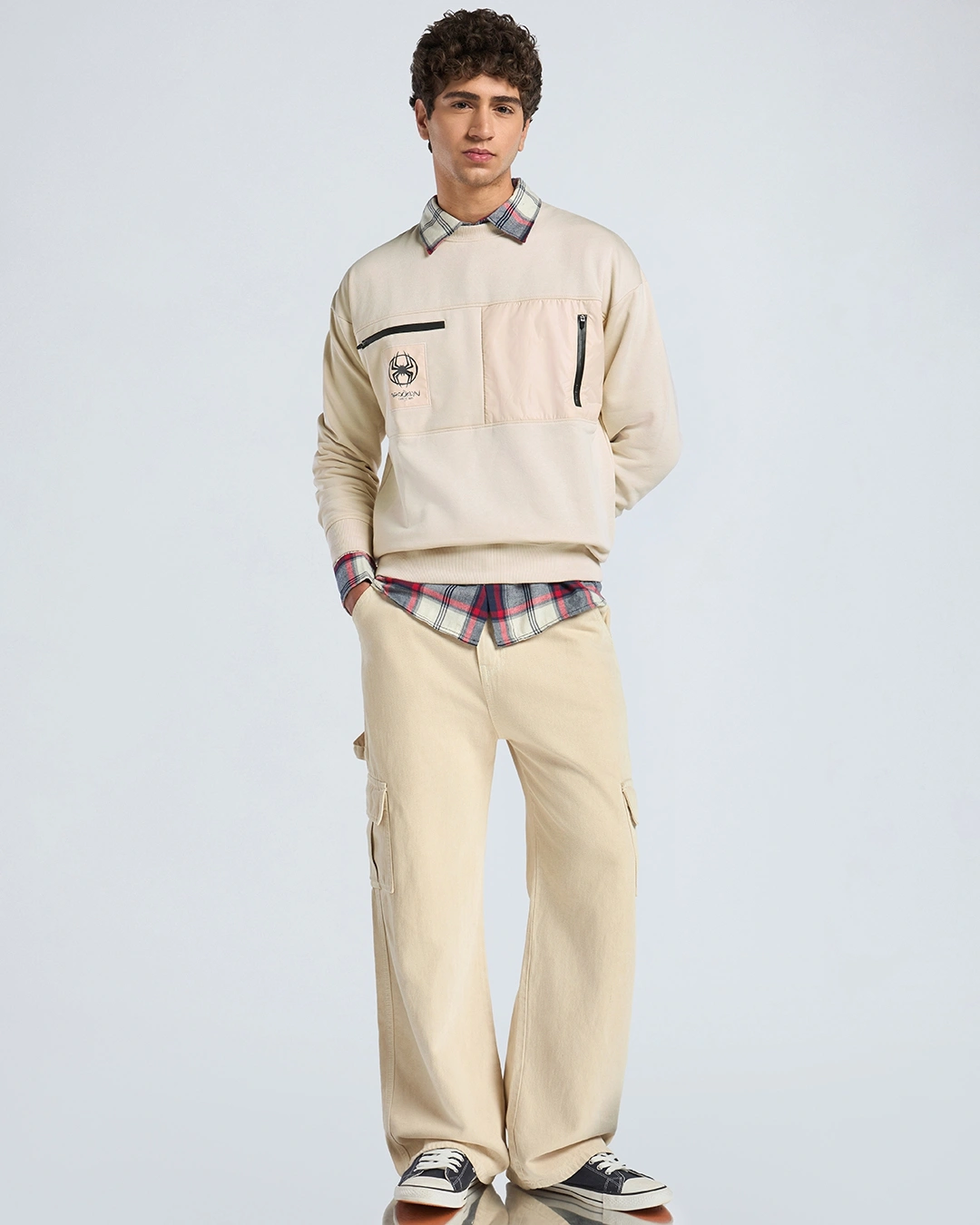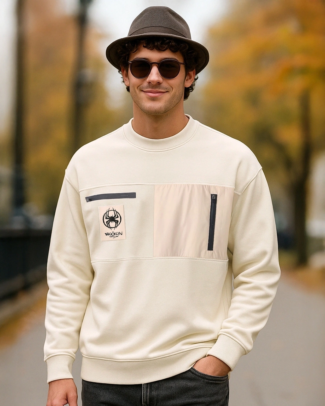 Every stitch is placed with precision, contributing to the overall endurance and refined finish of the garment. The clean construction ensures that the sweatshirt maintains its shape and structure, giving it a premium feel that elevates its simple design. Because of its neutral shade and stylish artwork, it carries an air of effortless coolness that works well for those who want to express personality through subtle details rather than bold, loud elements.