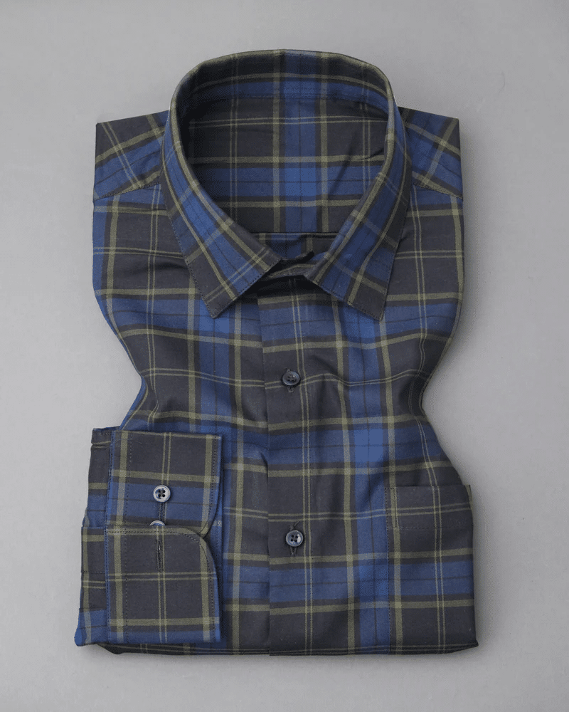 • Denim Dobby Symphony: A premium Giza cotton shirt with a unique blend of denim and dobby textures.