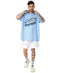 Pair it with your favorite jeans and sneakers for a casual-cool look that’s perfect for any occasion, or dress it up with trousers and loafers for a more refined ensemble. However you choose to style it, the Sky Blue Loose Fit Printed Oversized Crew T-Shirt is sure to become a staple in your wardrobe rotation, adding a pop of color and personality to every outfit.