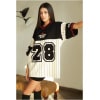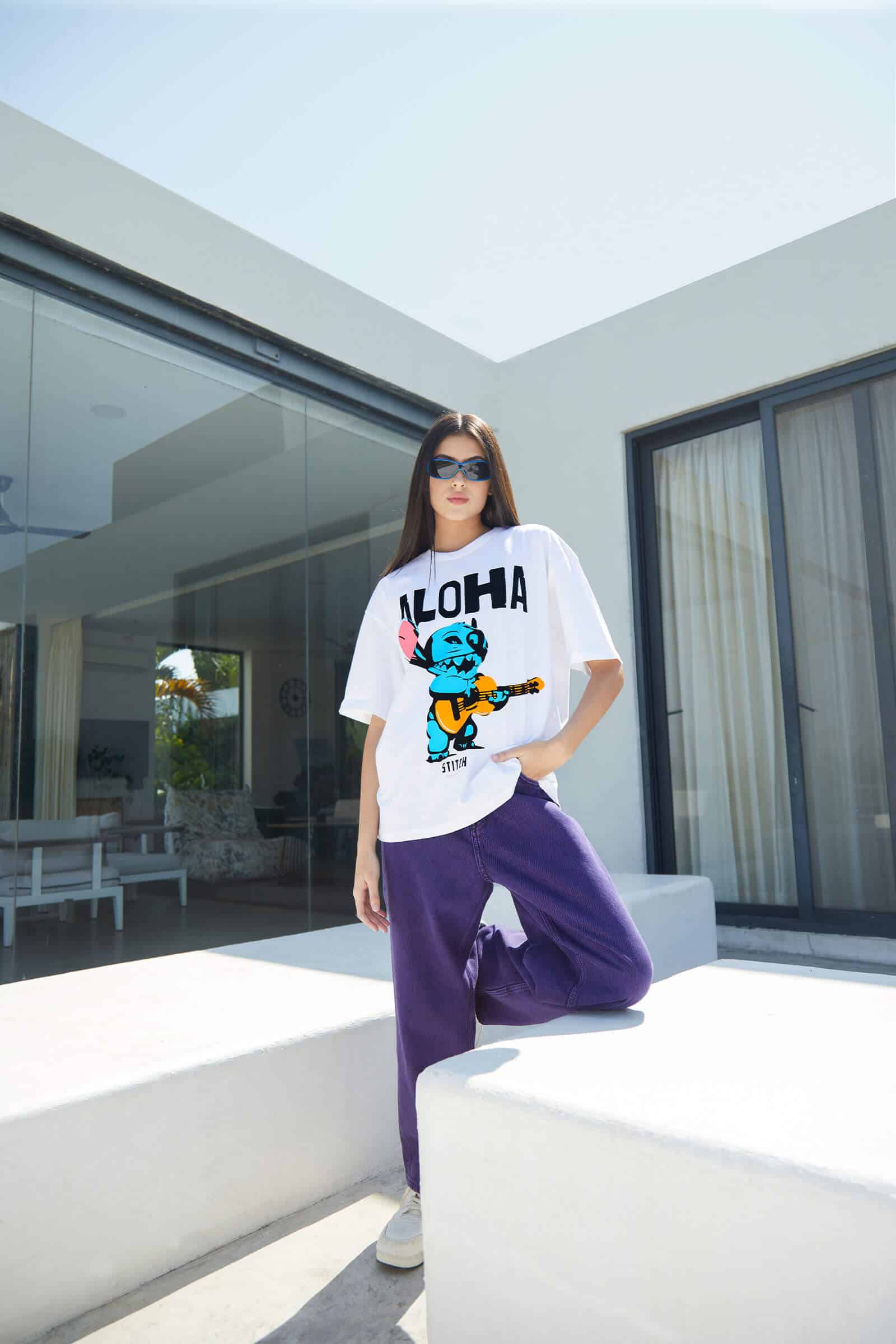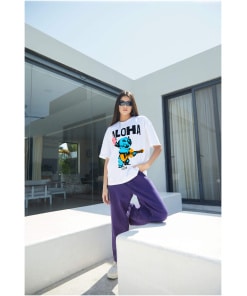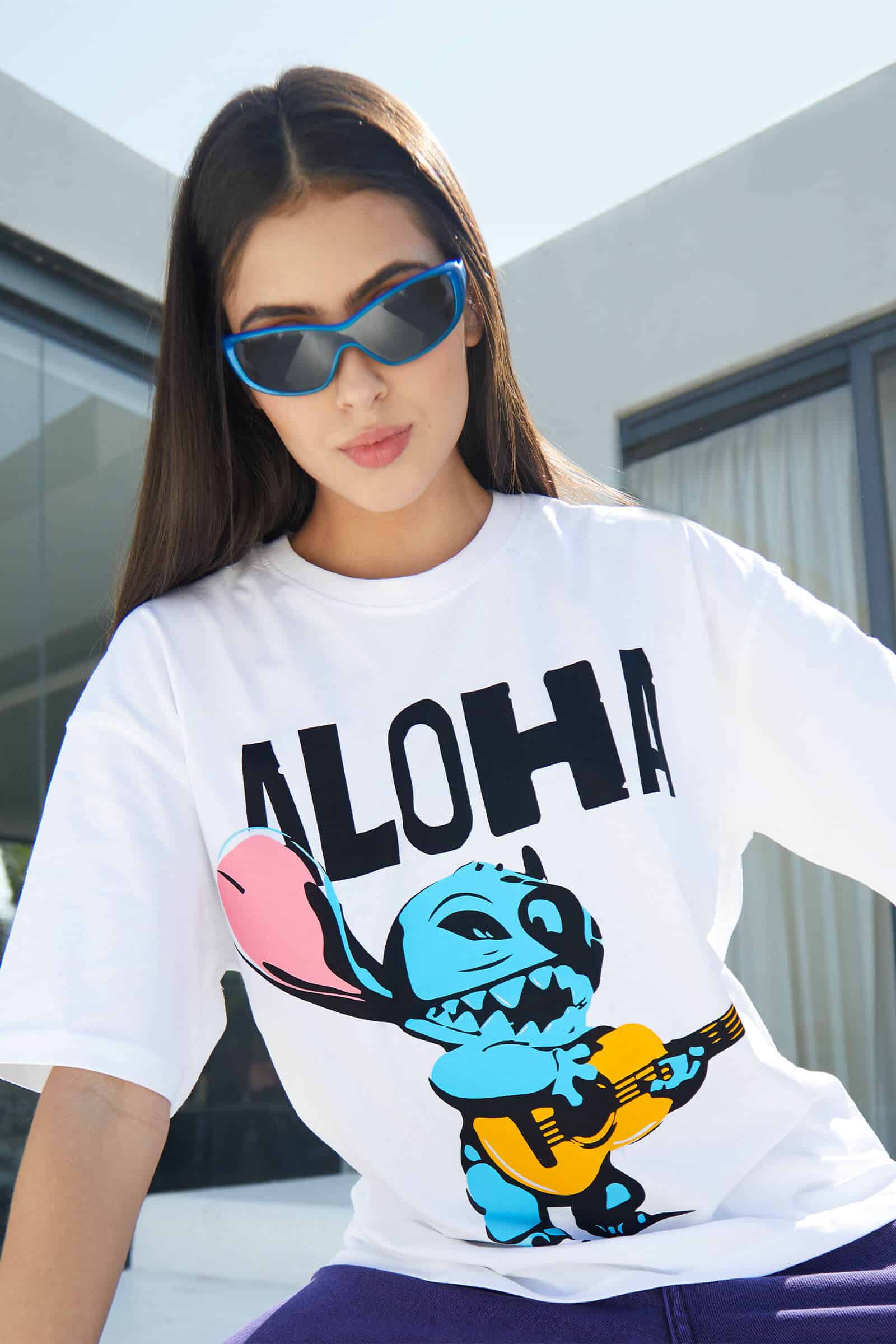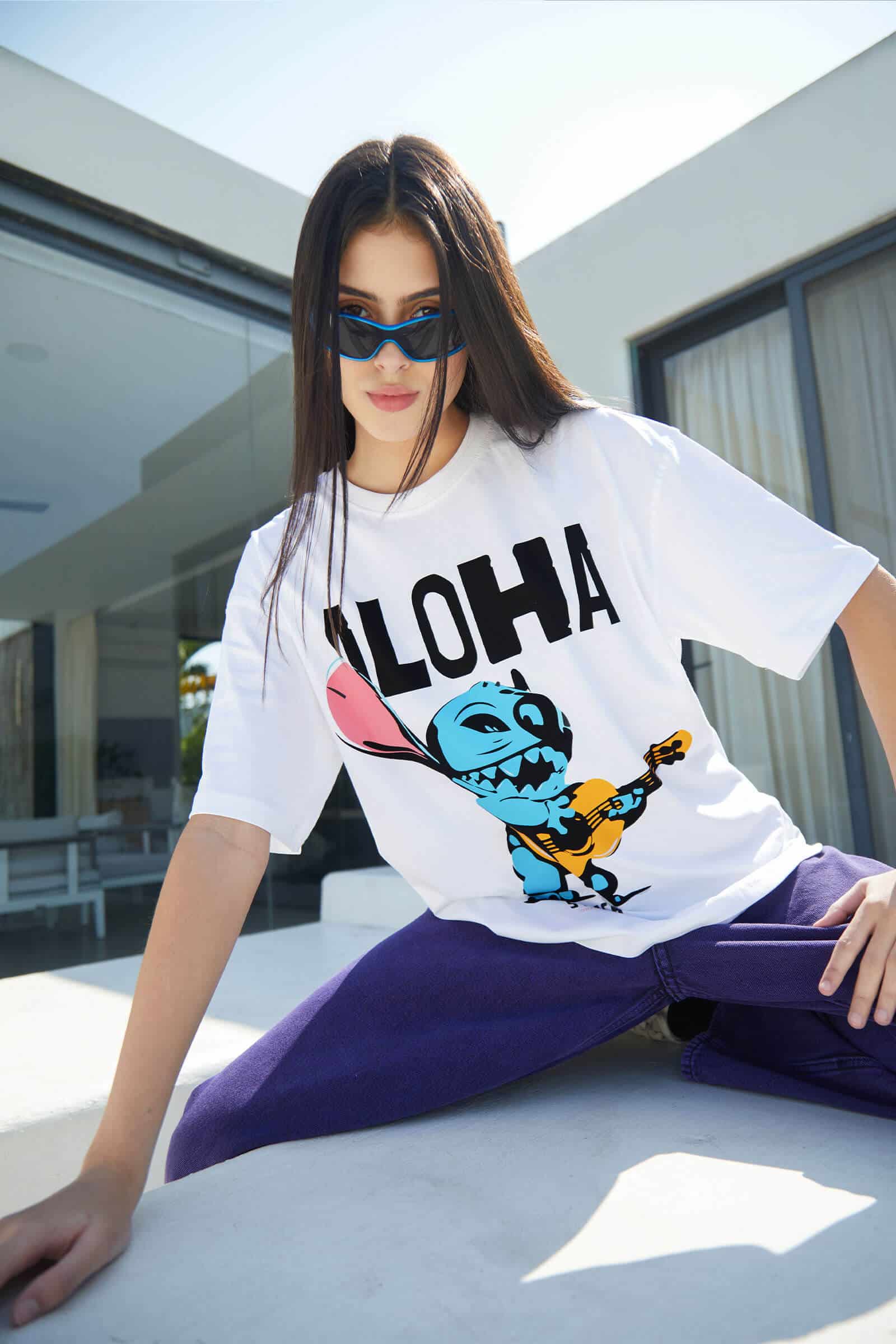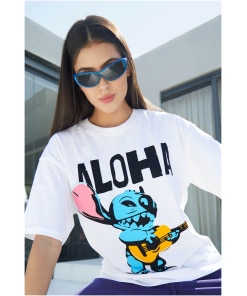 The oversized silhouette offers a comfortable and relaxed fit, allowing you to move freely and immerse yourself in the carefree spirit of Stitch’s whimsical escapade. Picture the versatility of this T-shirt, seamlessly fitting into your wardrobe for those moments when you want to express your playful side and make a statement that radiates happiness.