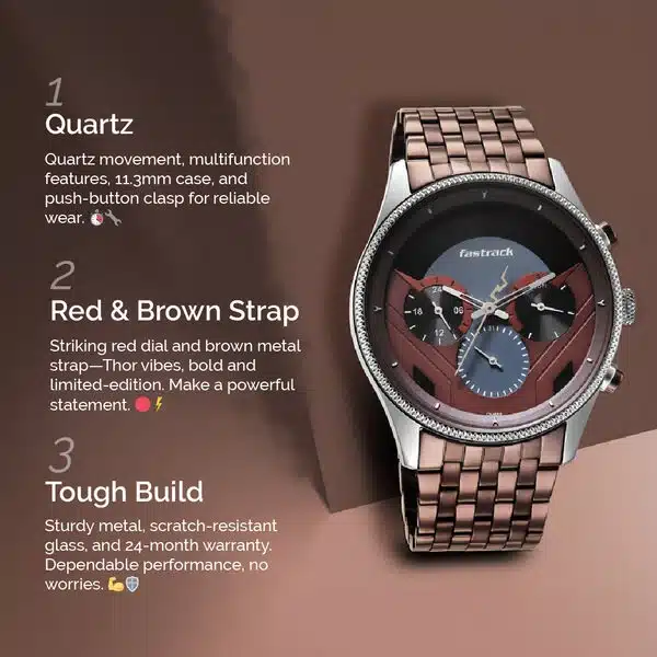 Thor Multifunction Quartz Red Dial Watch – Metal Strap for Men